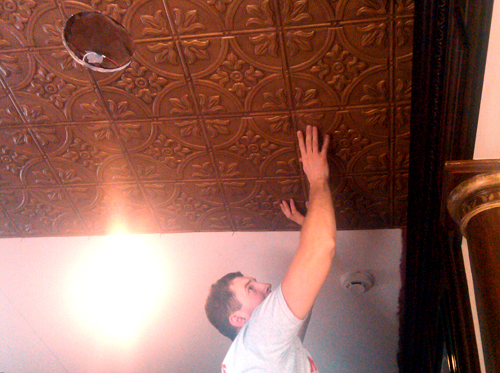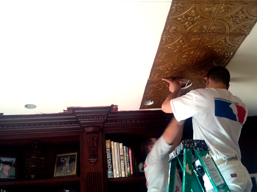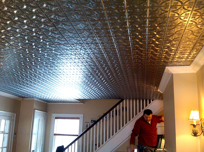 Install your tin ceiling tiles